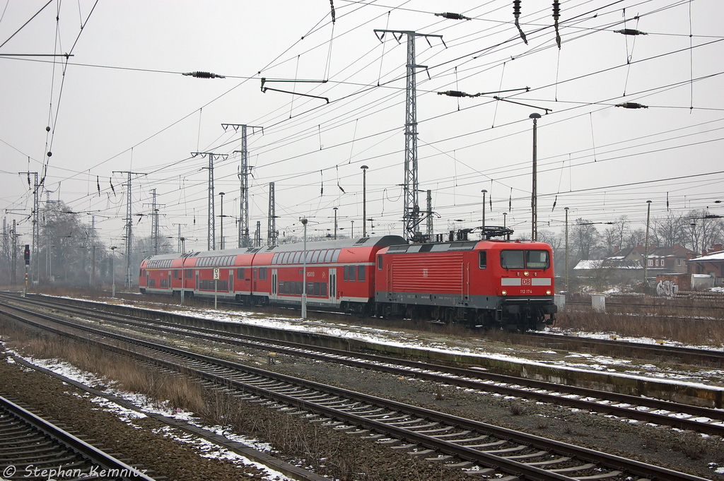 112 174 mit dem RE20 (RE 17616) von Halle(Saale)Hbf nach Uelzen, bei der Einfahrt in Stendal. 16.02.2013