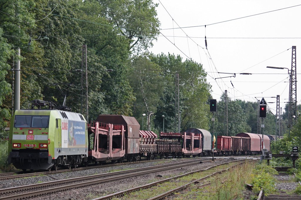 152 005 "Claas" am 24.8.12 mit einem gemischten Güterzug in Ratingen-Lintorf.