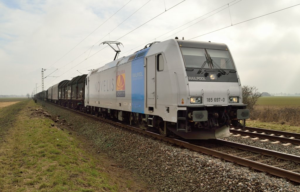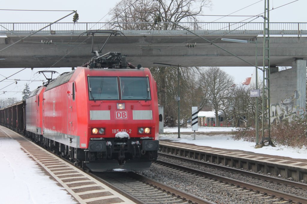 185 111-2 mit Schwester und Tonerdezug in Ringsheim am 13.02.2013