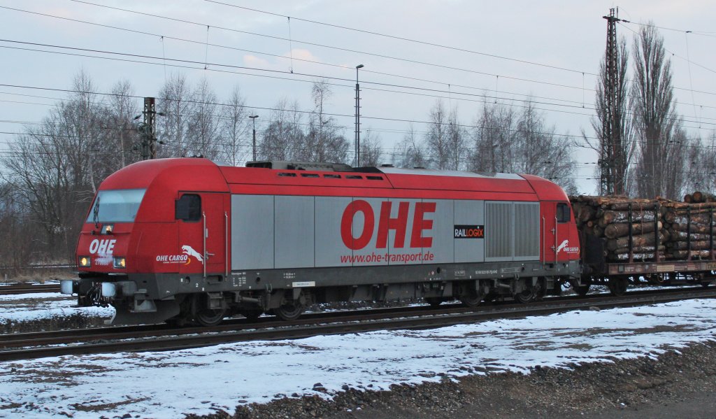 Am 9.Februar 2013 war OHE 270 080 (223 101) mit einem leeren Holzzug in Elze (Leine) auf dem Weg Richtung Hildesheim.