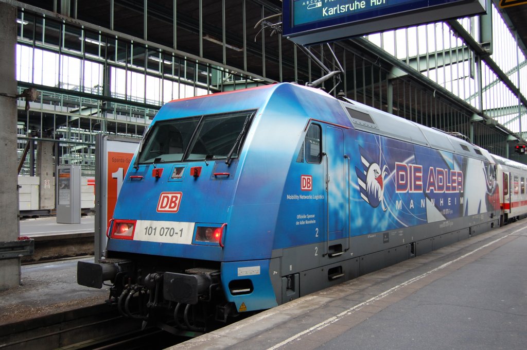 BR 101 070-1 (Die Adler Mannheim) am 16. Februar 2013 in Stuttgart (Hbf)