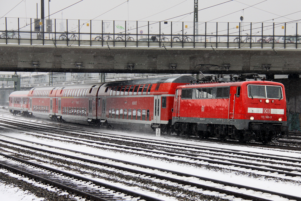 Die 111 186-3 mit RB von München nach Treuchtlingen am Hirschgarten am 15.02.2013