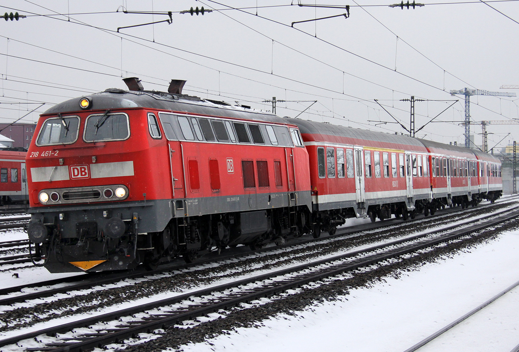 Die 218 461-2 mit RB von Landshut nach München am Hirschgarten am 15.02.2013