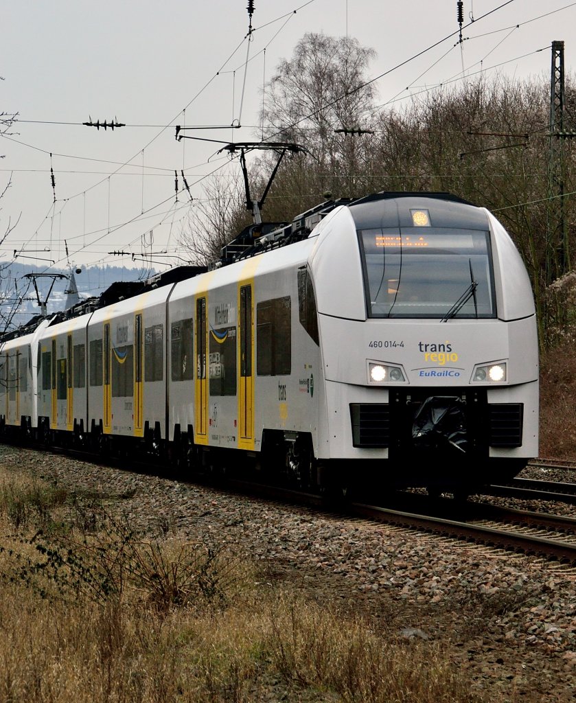 Dienstag 12.2.2013 RB-Doppel geführt vom 460 014-4 bei der Einfahrt in Oberwinter.