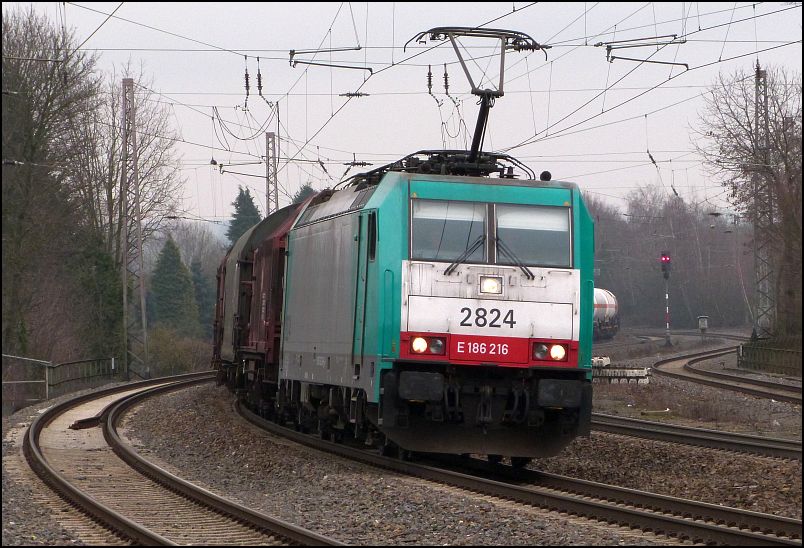 Mit Güterfracht aus Köln Gremberg am Haken. Die belgische Cobra (2824) unterwegs nach Aachen West. Location: Eschweiler(Rhl),16.02.2013.
