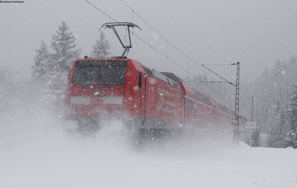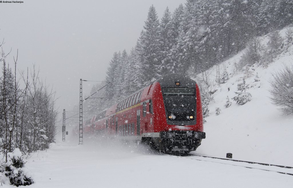 RE Stuttgart-Aalenhält am 10.2.13 bei eiskaltem Wetter (-9) in Schwäbisch Gmünd.