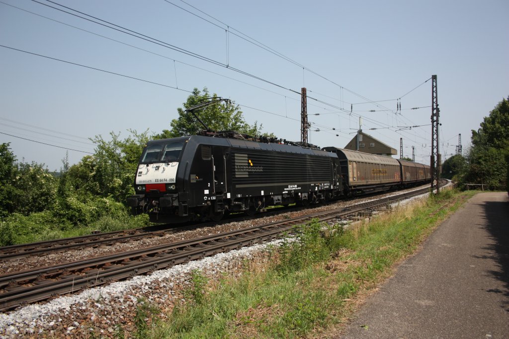 MRCE Taurus ES64 U2-062 mit einen Containerzug am Haken am 15.02.2013 durch München-Pasing.