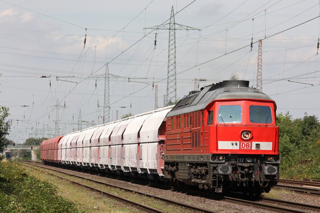 232 703 am 27.8.12 mit einem Kalkzug in Ratingen-Lintorf.