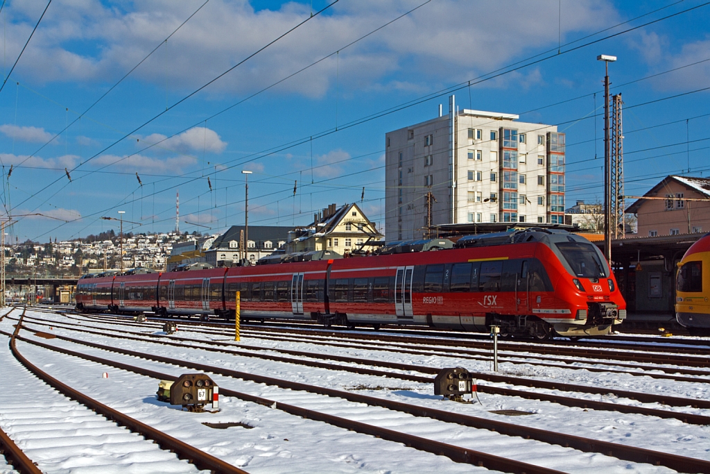 Ein 5-teiliger Bombardier Talent 2, 442 802 / 302 des rsx - Rhein-Sieg-Express ist am 10.02.2013 im Hbf Siegen abgestellt.