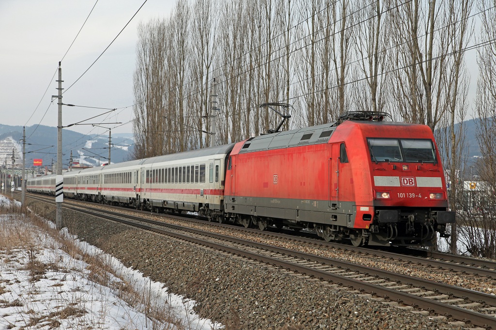 101 039 mit IC719 (Salzburg - Graz) bei Niklasdorf am 19.02.2013.