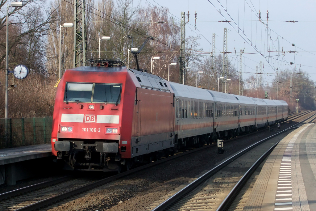101 106-3 mit IC 132 nach Luxemburg bei der Durchfahrt in Recklinghausen-Süd 18.2.2013