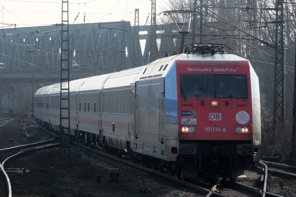 101 118-8 mit IC 2335 nach Norddeich bei der Durchfahrt in Recklinghausen-Süd 18.2.2013