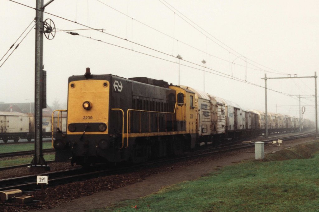 2239 mit Güterzug F 58561 Coevorden-Zwolle in Coevorden am 30-12-1991. Bild und scan: Date Jan de Vries.