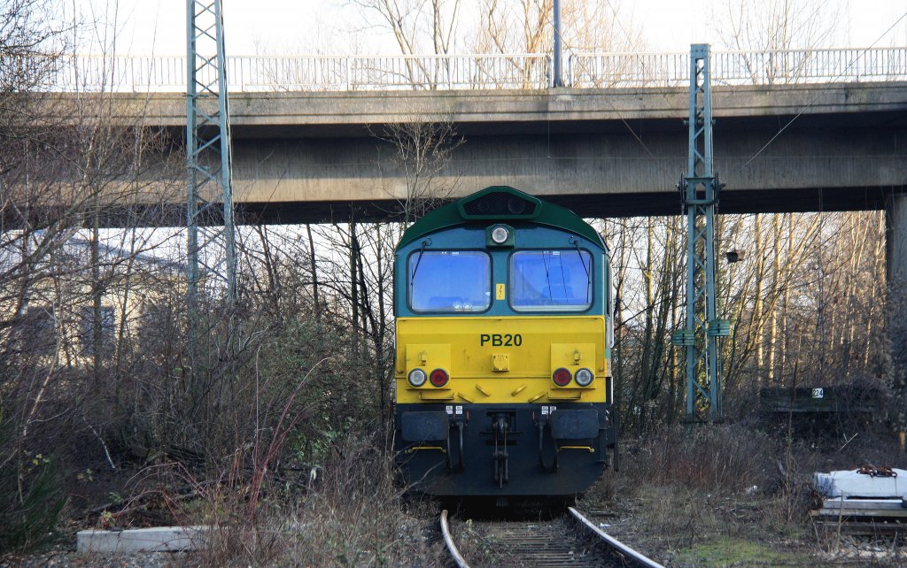 Die Class 66 PB20 von Railtraxx BVBA steht in Aachen-West auf dem abstellgleis bei schöner Wintersonne am 17.2.2013.