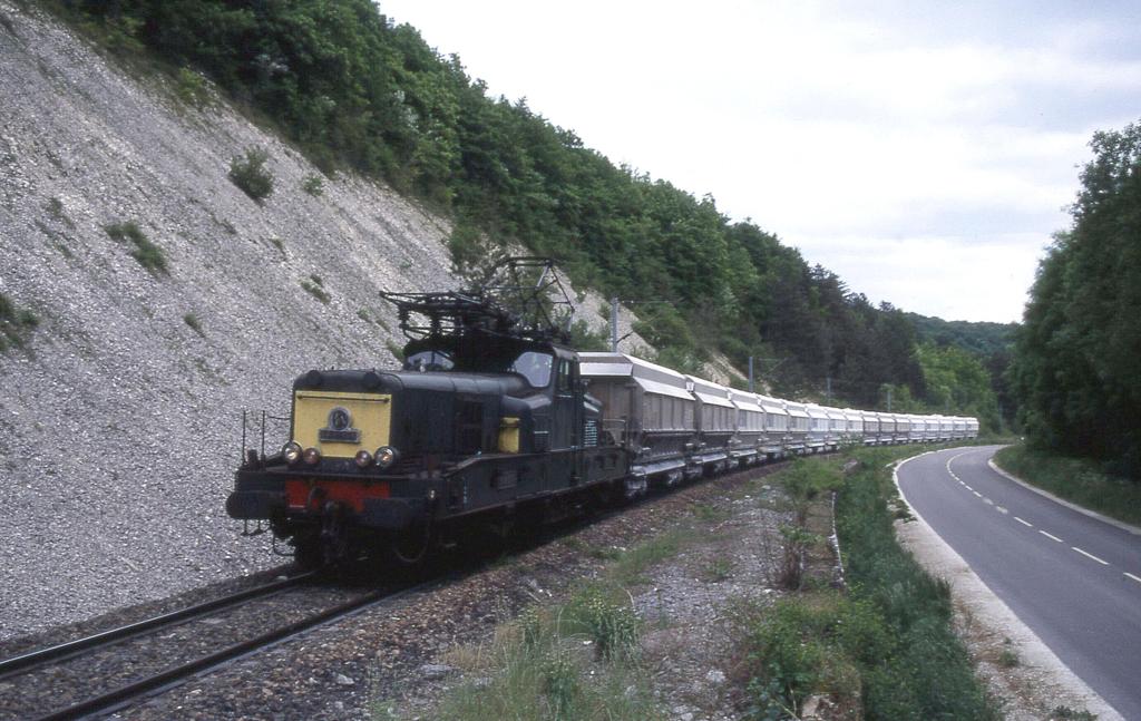 Krokodil der SNCF 12060 kommt mit einem Kalkzug vom Steinbruch bei