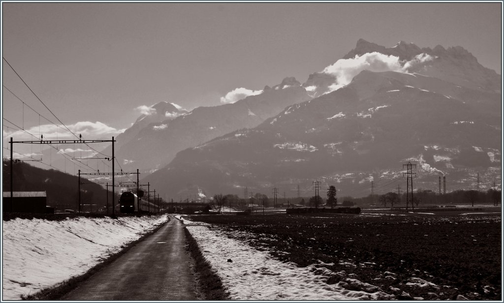Mehr Landschaft, als Bahnbild: Re 460 mit IR bei Aigle auf der Fahrt in Richtung Montreux.