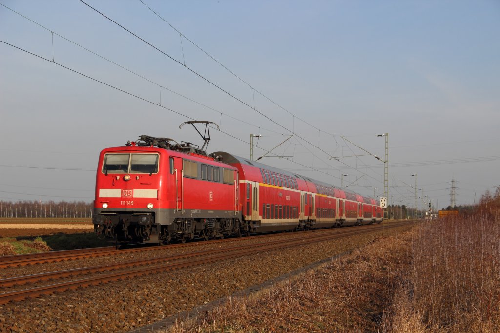 111 149 mit dem RE 10422 (Dortmund Hbf - Aachen Hbf) in Büttgen am 18.02.13