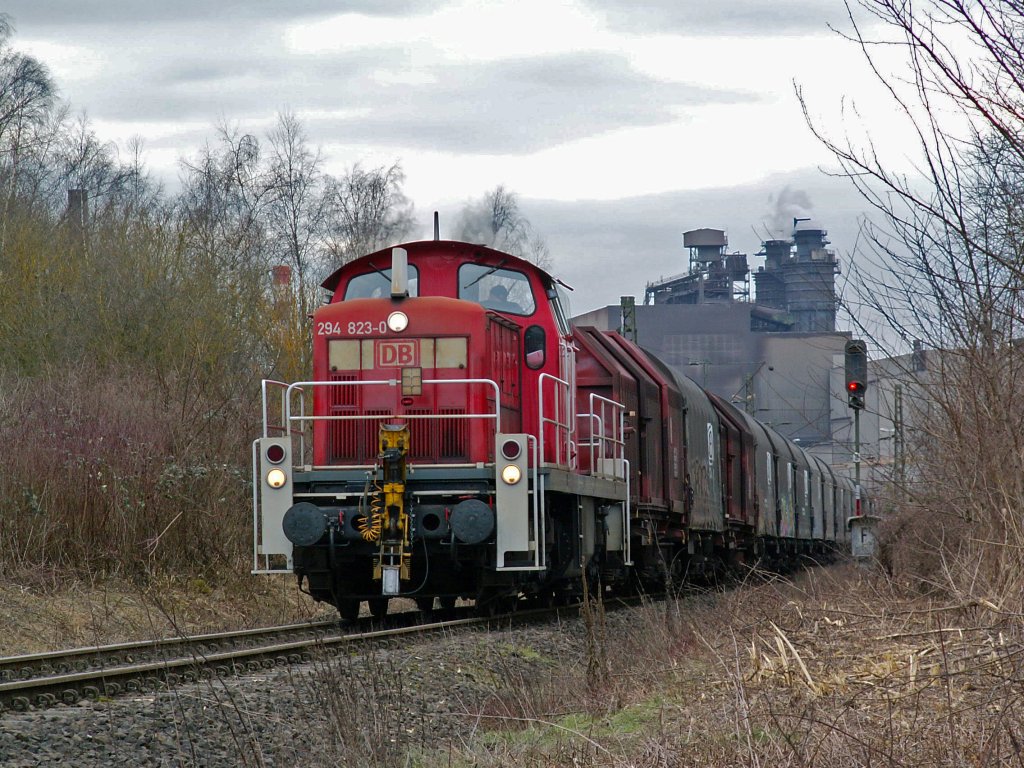 294 823 von Dillingen nach Limbach am 20.2.13. Im Hintergrund die Dillinger Hütte.