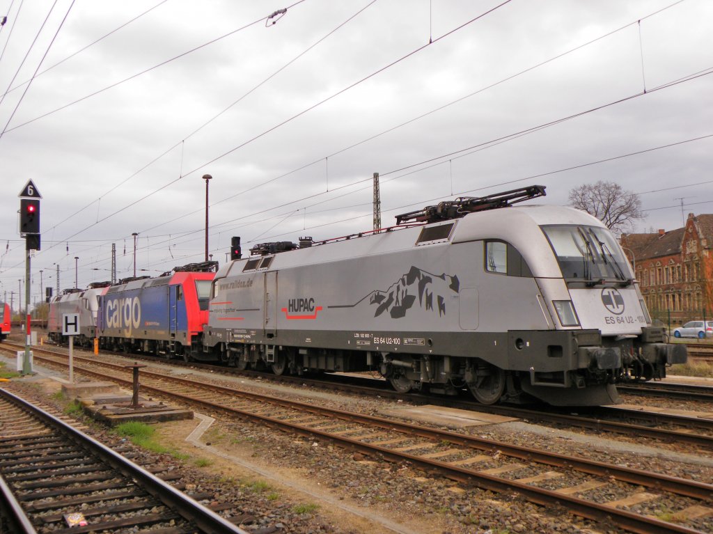 Am 1.April 2012 stand Hupac/Raildox ES64U2 100 mit zwei weiteren Loks in Stendal abgestellt.