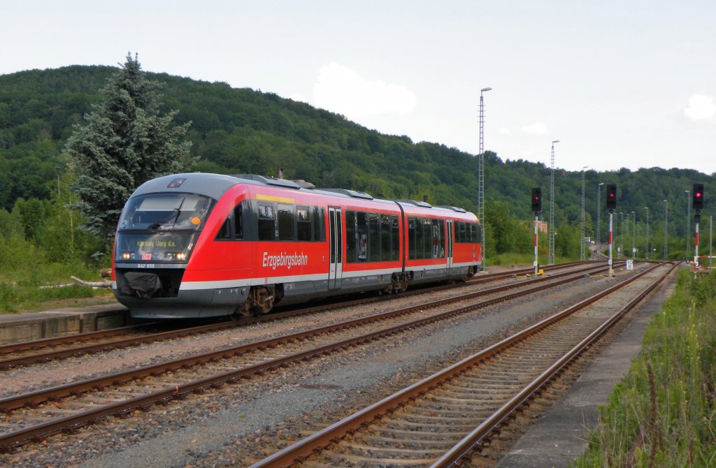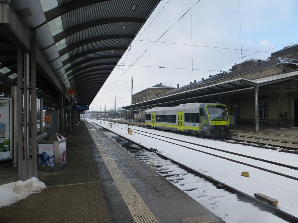 Ein Regionalexpress fährt am 20.02.13 aus dem Hofer HBF in Richtung Regensburg.