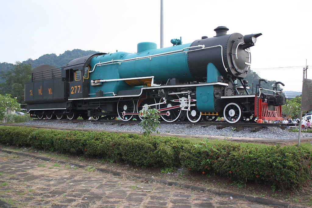 Einen neuen Anstrich erhielt die, in der Gleisgabelung nahe der Thung Song Junction aufgestellte 277 (2'C1'-h3, Hanomag, Bauj. 1929, Fab.Nr. 10657). Bild vom 06.Jänner 2013.