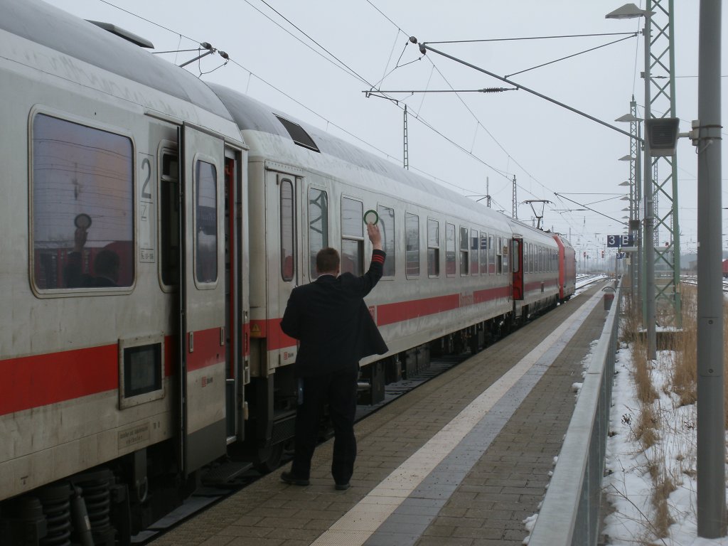 IC 2377 Binz-Frankfurt/Main Hbf erhielt,am 16.Februar 2012,in Bergen/Rügen Abfahrt.
