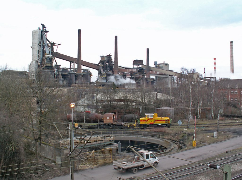 Lok R21 der Dillinger Hütte am 20.2.13 vor den Hochöfen