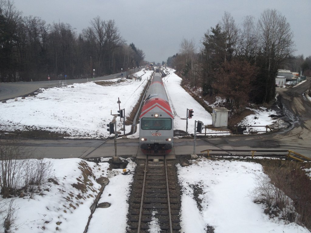 Seit kurzem ist es wieder so weit! Die Morgensonne lässt es zu das man ab sofort wieder R 8553 auf seinem Weg nach Wies-Eibiswald fotographieren kann. So geschehen am 19.02.2013 kurz vor der Einfahrt in den Bahnhof Lannach.
