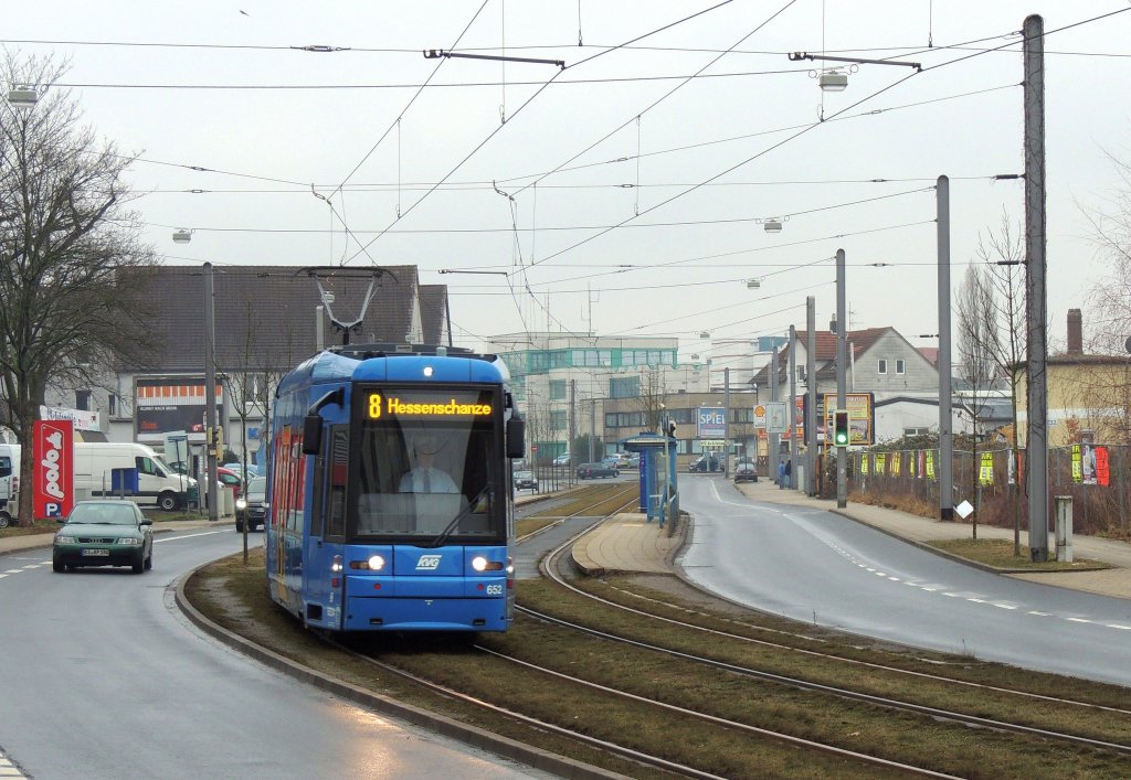 Wagen 652, getroffen am 16.2.2013 zwischen den Haltepunkten Forstfeldstrasse und Leipziger Platz.