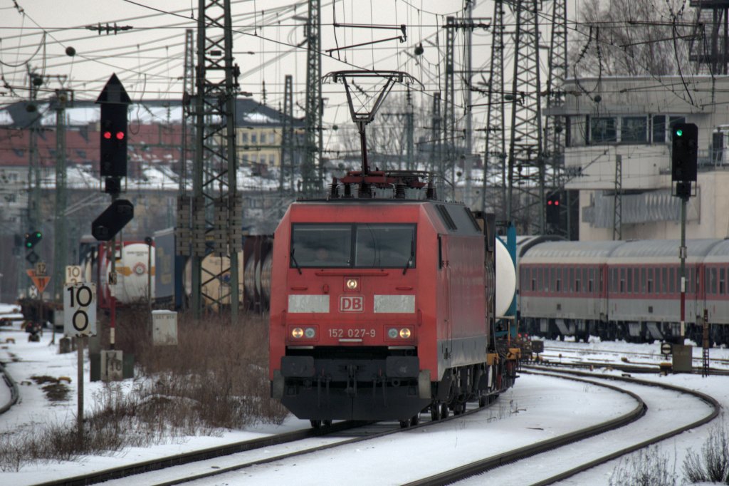 Nachschuss auf den Schrottzug von Nürnberg nach Trier-Ehrang am 20. Februar 2013 in Nürnberg-Glaishammer. Am Zugschluss hängt 80-35 525 (Bybdzf 482.1).