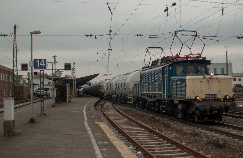 194 178 von Rail4U mit einem Kesselwagenzug am 26.02.13 in Neuwied BF.