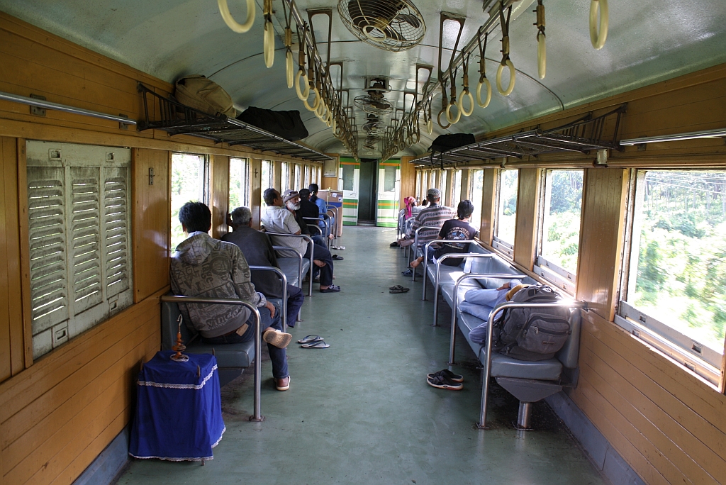 Innenansicht des บชส. 298 (บชส. =BTC./Bogie Third Class Carriage), aufgenommen während der Fahrt mit dem ORD 447 am 07.Jänner 2013 zwischen den Bf. Thung Song Junction und Sai Yai.