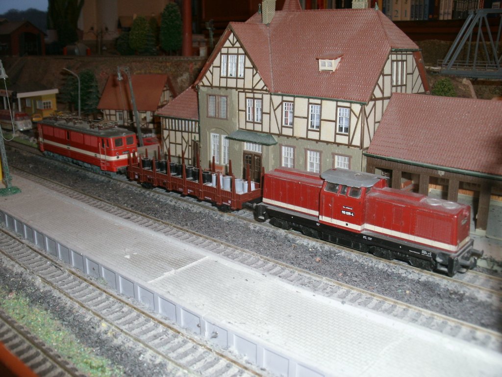 Während der Rungenwagen für das Industriegebiet bestimmt war,wurde der Holzroller 211 035 im Tunnel,auf meiner H0-Zimmeranlage,"versteckt".
