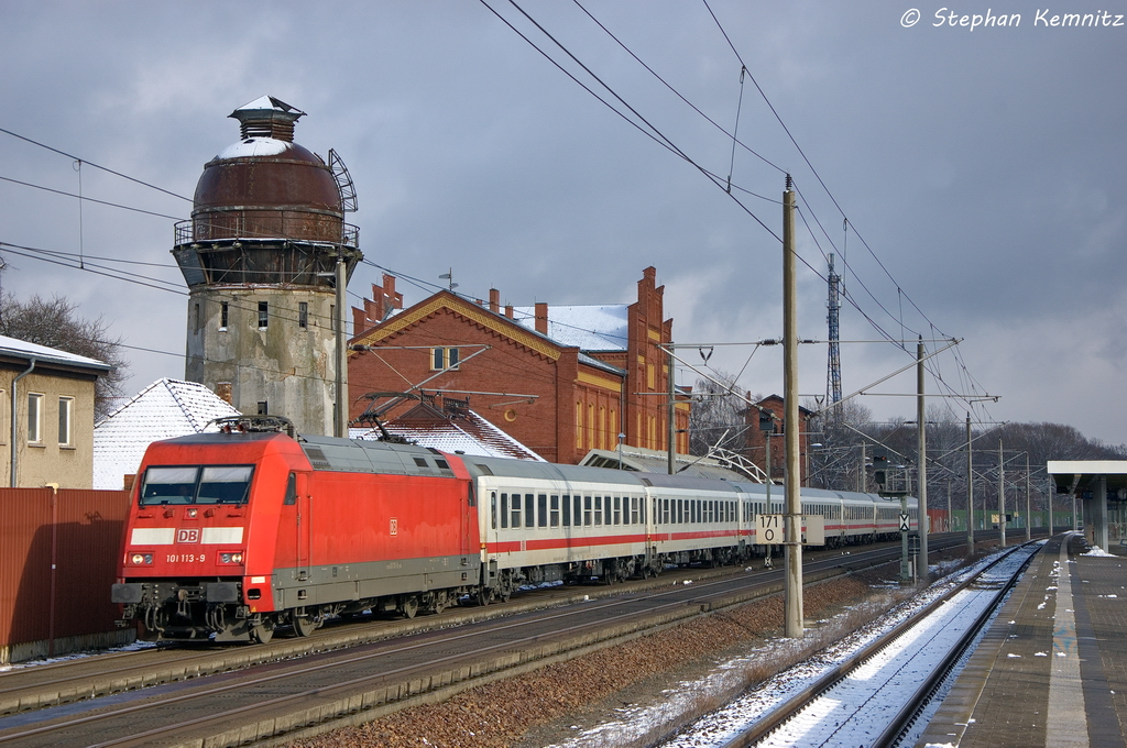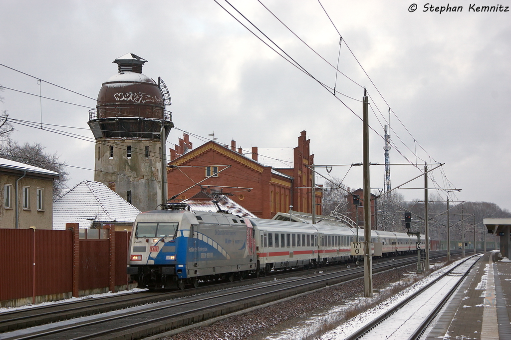 101 080-0 fuhr am 08.02.2013 mit dem IC 133 von Koblenz nach Norddeich, hier bei Veenhusen.