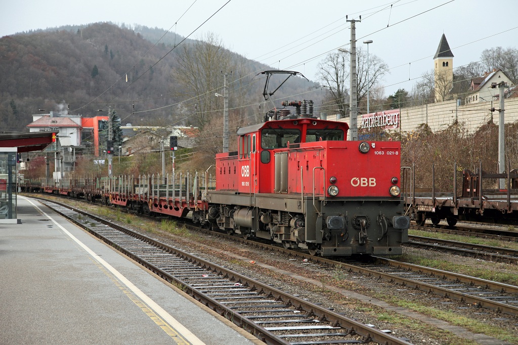 1063 021 fährt mit dem Verschubgüterzug 74652 am 3.12.2012 in den Bahnhof Kapfenberg ein.