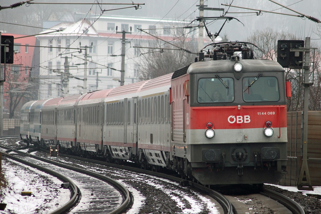 1144 069 ist am 5.02.2013 mit EC151 bei Kapfenberg unterwegs.