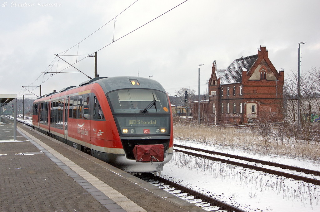 Hier 442 826-4 als RE7 (RE18715) von Wünsdorf-Waldstadt nach Dessau Hbf., bei der Ausfahrt am 6.2.2013 aus Berlin Schönefeld Flughafen.