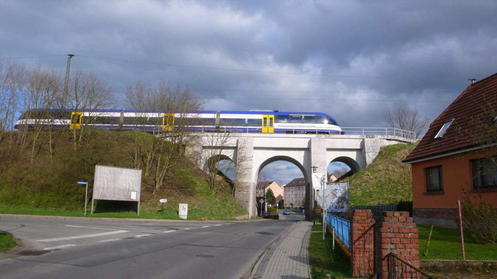 8.4.2008 ein Zug der Ola verlässt den Bf Altentreptow in Richtung Neubrandenburg