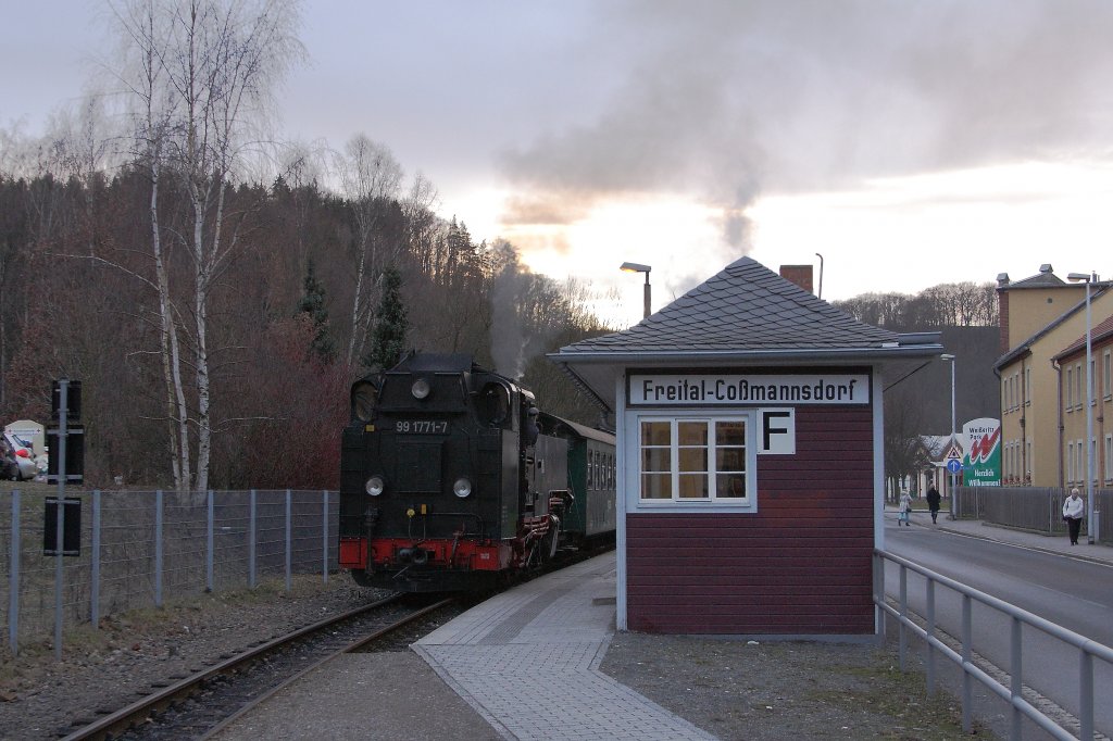 99 1771 mit P5007 am Nachmittag des 31.12.2012 im Bahnhof Rabenau.