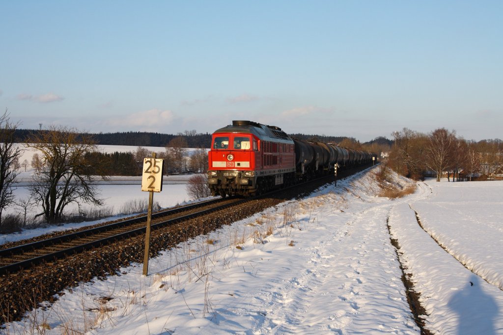 Am 08.02.13 war 233 478-7 mit einem Kesselzug Richtung München bei Unterschwillach unterwegs.