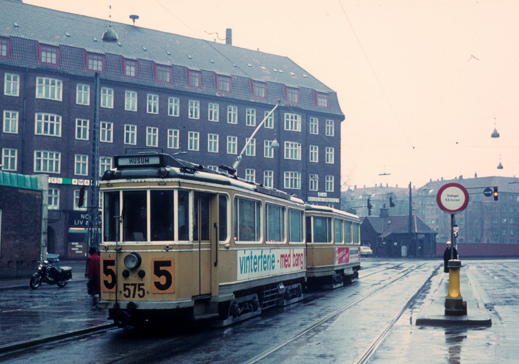København / Kopenhagen KS SL 5 (Grossraumtriebwagen 575) Amager Boulevard / Amagerbrogade am 17. März 1970. - Der Triebwagen befindet sich heute in der Sammlung des Dänischen Strassenbahnmuseums.