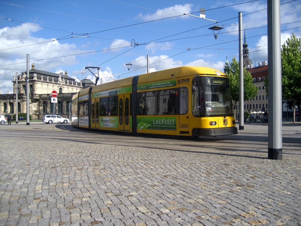 NGT 6 DD - 2535 - auf der Linie 4. Gesehen am 28.09.2012 kurz vor der Station Postplatz. Im Hintergrund ein Teil des Zwingers.