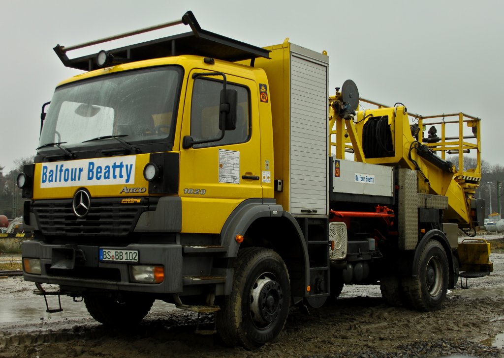 Zweiwegefahrzeug mit Hebebühnenaufbau von Balfour Beatty am 02.20.2013 in Aachen West.