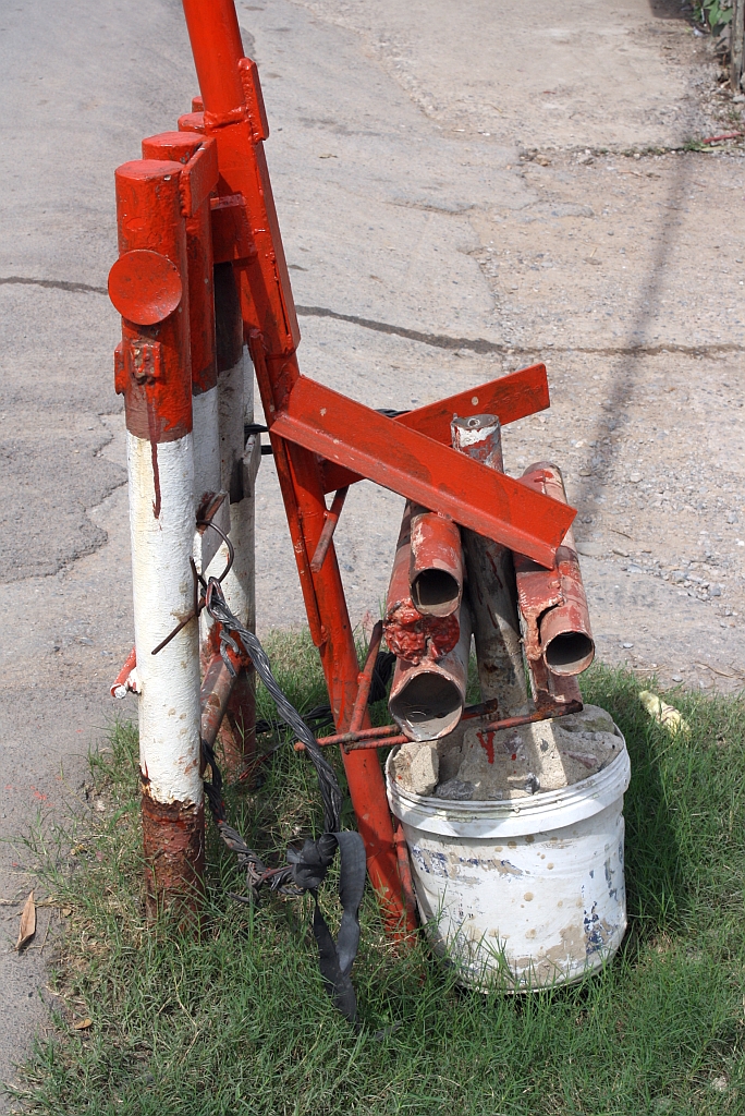 Bemerkenswerte Konstruktion des Schrankens bei der Hst. Khok Khwai. Bild vom 17.November 2012.