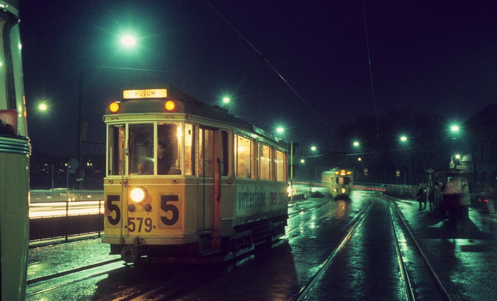 København / Kopenhagen KS SL 5 (Grossraumtriebwagen 579) Amager Boulevard / Thorshavnsgade am 9. Februar 1970.