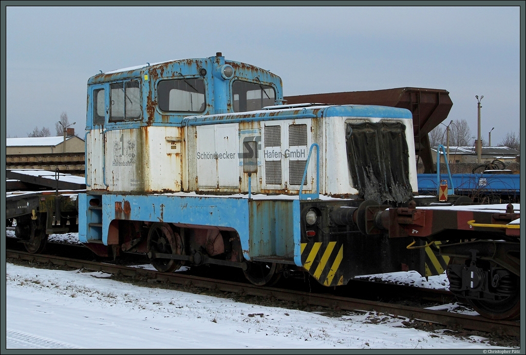 Lok 1 der Hafenbahn Schönebeck wartet am 20.01.2013 im Magdeburger Hafen auf bessere Zeiten.