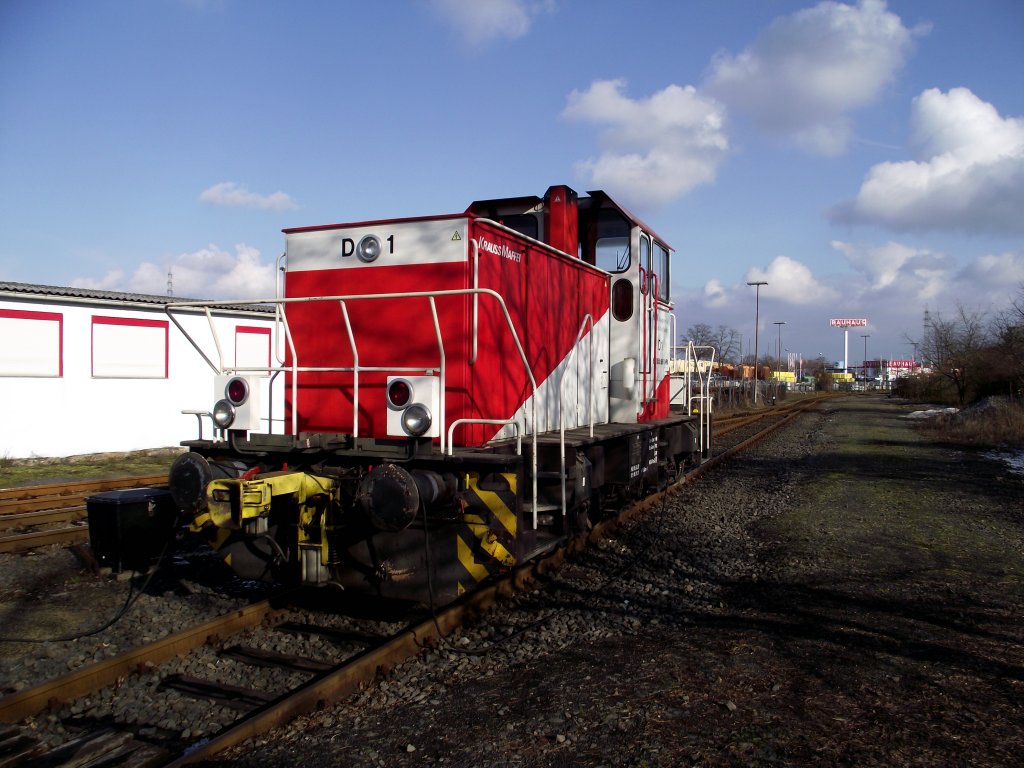Lok D1 (Krauss Maffei MH05) steht am 09.02.13 in Hanau Hafen