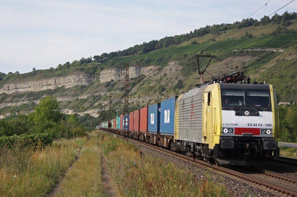 MRCE Dispolok/TXL ES 64 F4-096 am 22.8.12 mit einem Containerzug in Thüngersheim.
