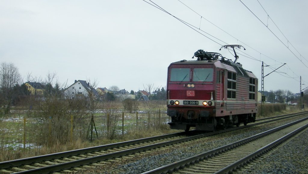 na wie lange werden die guten alten Loks wohl noch auf unseren Schienen fahren?, am 7.2.2013 fuhr die 180 006-9 solo durch Dresden-Stetzsch Richtung Coswig
