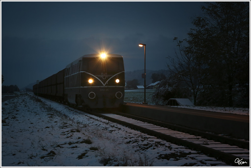 ÖGEG Diesellok 2050.05 fährt mir dem umgeleiteten Erzleerzug 95635 (Linz Stahlwerke, Attnang, Braunau, Salzburg, Koper) von Braunau nach Salzburg Gningl.